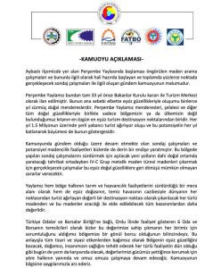 “Aybastı ilçemizde yer alan Perşembe Yaylasında başlaması öngörülen maden arama çalışmaları ve bununla ilgili olarak hali hazırda başlayan ve toplamda yüzlerce noktada gerçekleşecek sondaj çalışmaları ile ilgili oluşan gündem kamuoyunun malumudur.